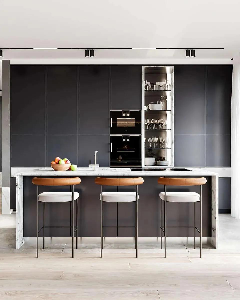 如果是酒吧的酒柜,通常分兩個部分,一部分是底柜,高度通常在60左右,厚度50左右。上柜則高度不超過2米,厚度不超過35.酒柜和吧臺之間的距離通常要應該在90厘米以上。